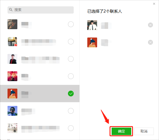 接下来,我们会进入到好友勾选界面,选中你想要拉进群中的联系人,点击确定;