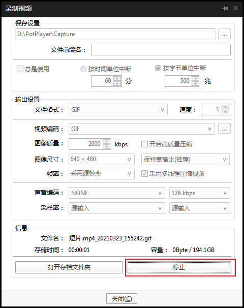 以上就是使用PotPlayer从视频中截取gif动图的方法,完成gif图截取后,打开存档文件夹即可查看截图效果。