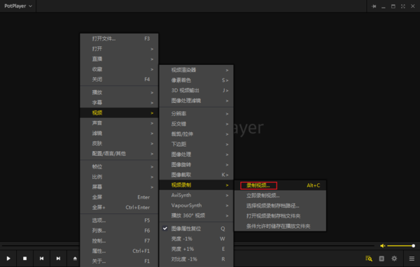 首先打开Potplayer,在软件上点击右键,依次点击视频——视频录制——录制视频。