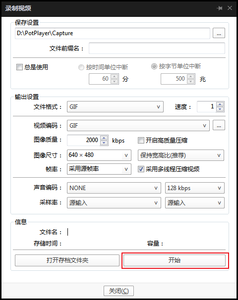 完成截图设置后,正常播放视频,之后点击下方的开始进行录制。
