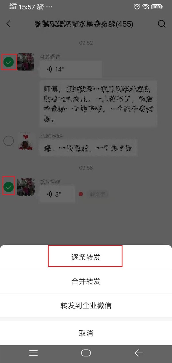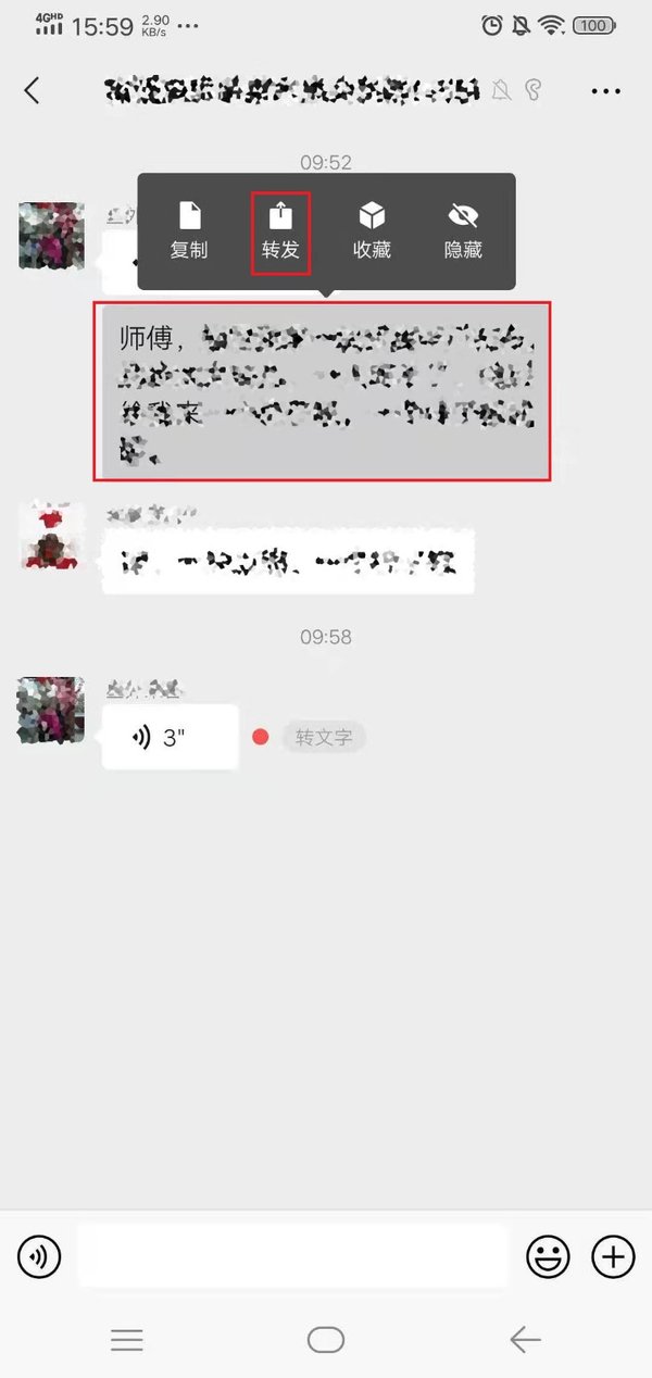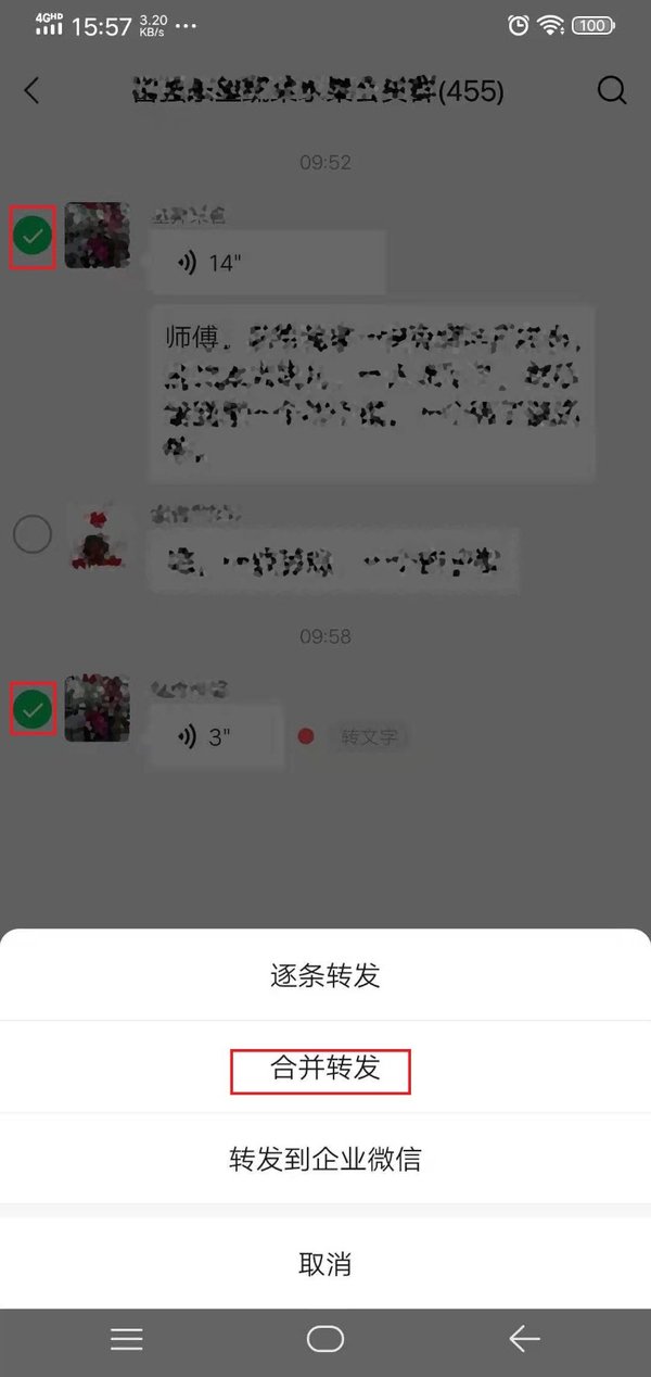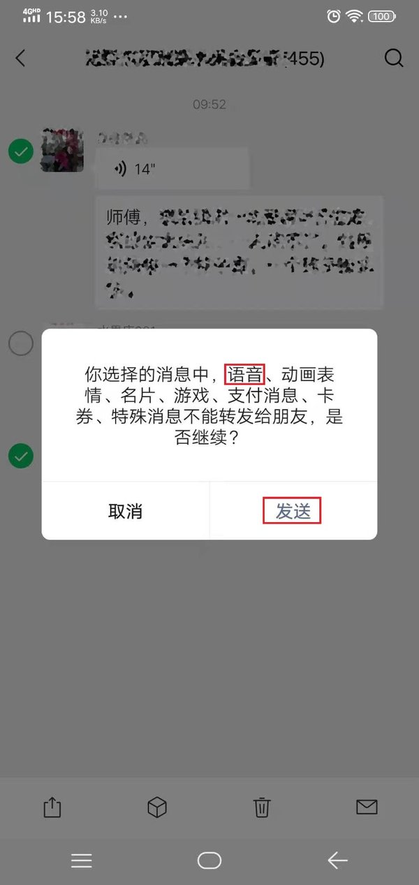 首先试一下微信中的将语音消息进行逐条转发和合并转发,但是语音消息在进行逐条转发后,微信会有语音消息不能转发的提示,并且消息在转发后,没有任何的反应。