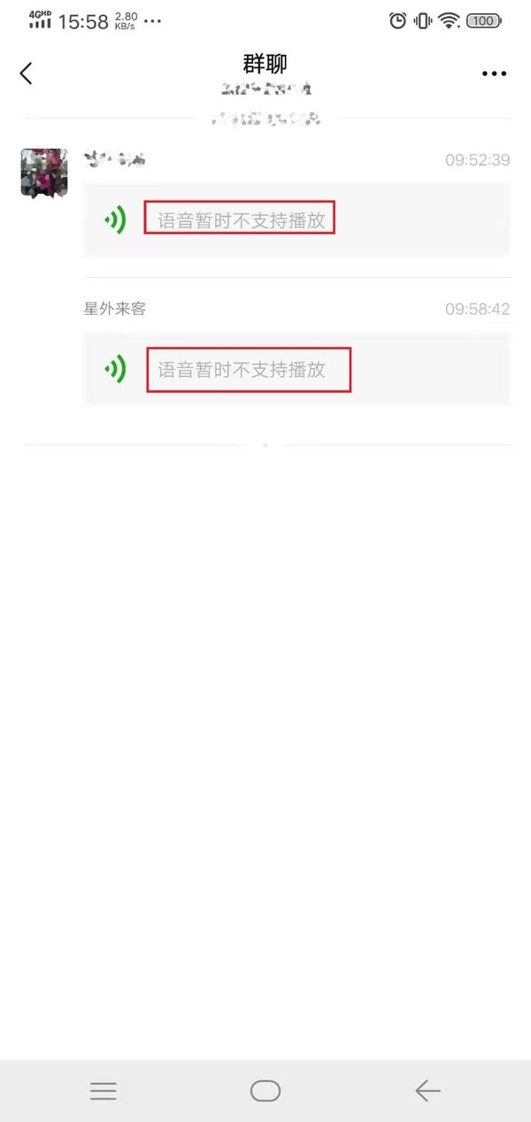 而在微信语音消息在进行合并转发时,消息转发后,系统会提示我们语音暂时不支持播放。说明这两种微信语音转发方法都不行。