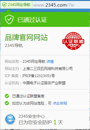 我们打开浏览器后,在地址栏的前面可以看到一个绿色或蓝色盾牌样式的图标,这就是2345浏览器的安全盾牌功能,作用是为用户提供了安全的上网环境,所以,安全盾牌是起到了一个上网环境检测提示作用的功能。