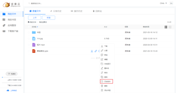 以上就是在坚果云中恢复文档历史版本的方法,合理使用这项功能可以减少文档出错的情况,一旦文档出现问题,可以快速的找回正确版本。