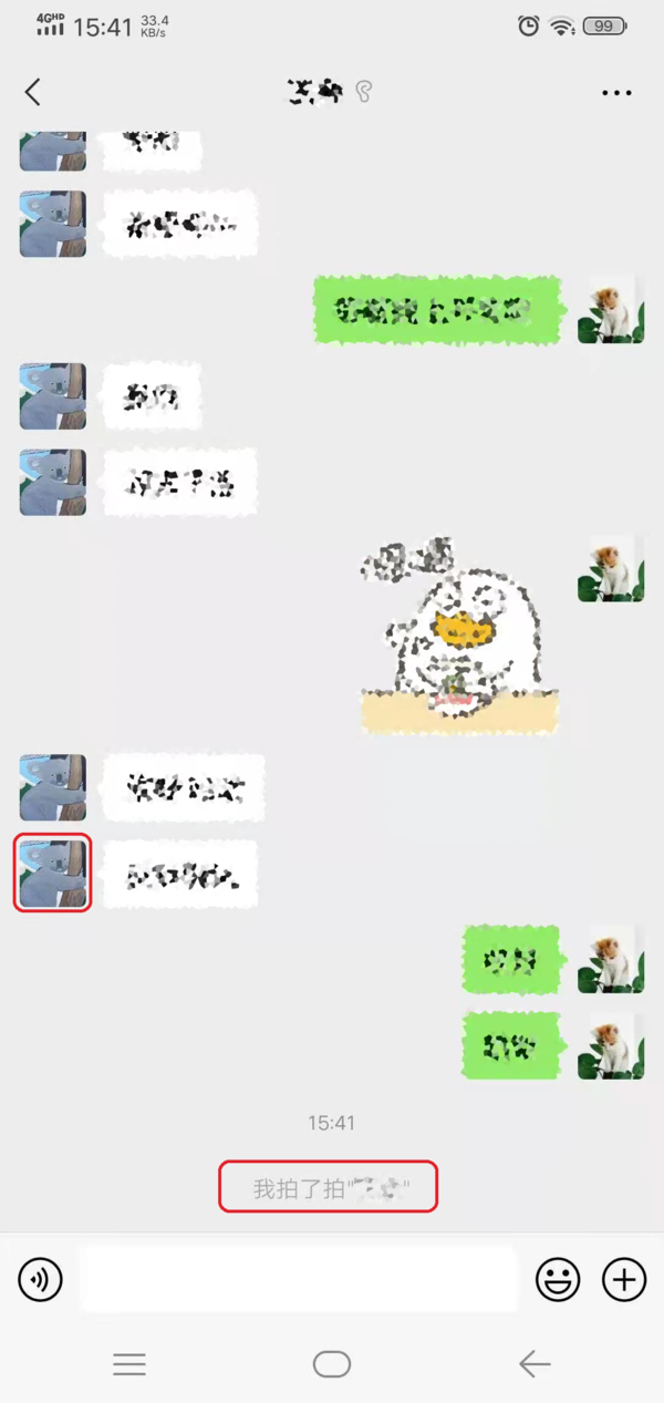 第三步,进入到聊天界面当中后,我们只需要双击好友的微信头像,就可以拍一拍他了,并且在聊天的界面当中,还会显示你拍一拍某某某。