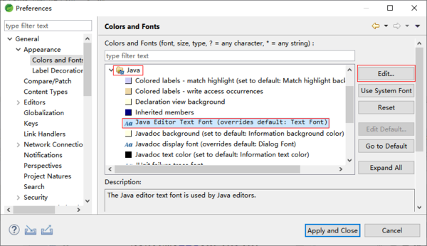 第四步,eclipse字体大小设置好了之后,就点击下方的【Apply?and?Close】确定即可。