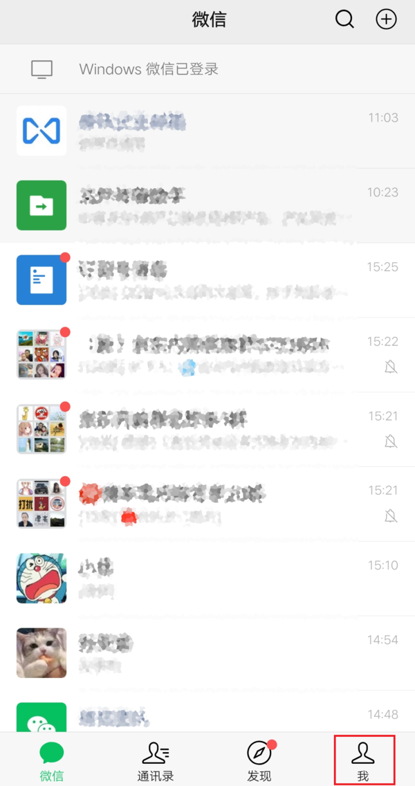 第一步,在手机的屏幕上找到微信应用,然后双击打开,接着点击微信界面右下角的【我】图标。