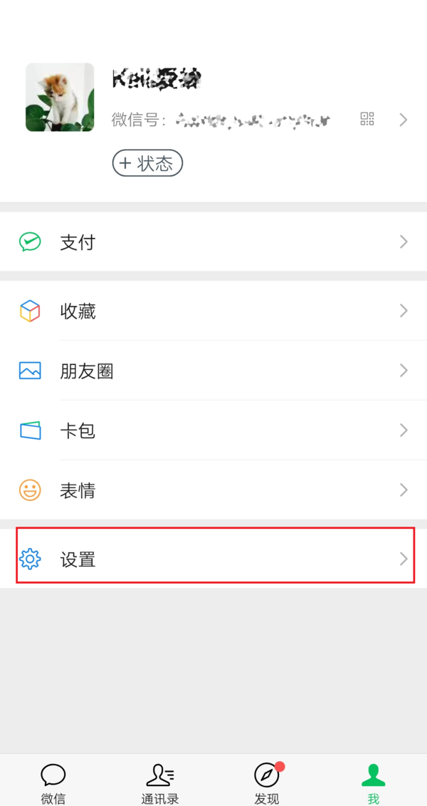 第二步,在微信弹出的界面中,我们找到【设置】选项,并点击打开。