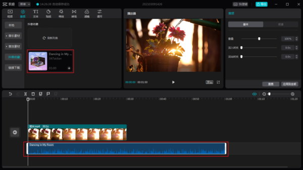 以上就是使用剪映添加抖音收藏的音乐的方法,借助这个功能,我们在剪辑视频时可以很方便的使用抖音上那些火爆的背景音乐,给我们的视频加分。