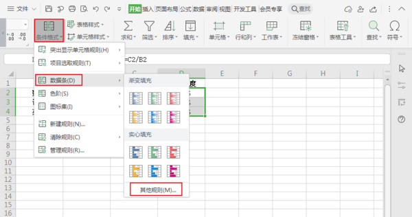 继续保持选中状态,点击菜单栏中的条件格式,选择数据条—其他规则。
