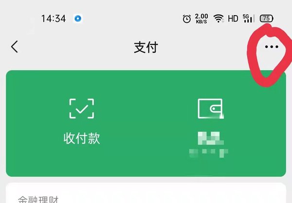 第二步,点击【支付】按钮,进入支付页面,点击右上角的【…】按钮