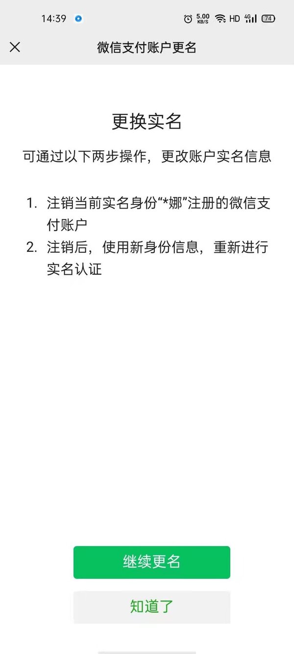 第五步,点击【继续实名】按钮,根据页面提示完成微信实名认证的更改即可。