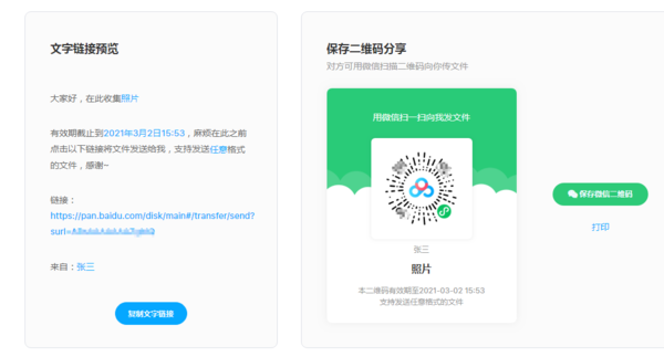 设置完毕后可以通过链接或者二维码的方式分享给其他人。