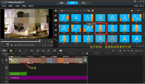 2)、选中其中一个转场,按住鼠标左键不松手;
