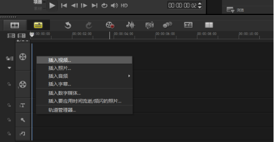 2.1、在视频轨上单击鼠标右键,插入照片就选择“插入照片”,视频就选择“插入视频”;