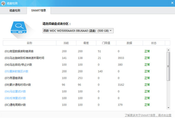 第四步,稍等片刻扫描完成之后,点击【SMART信息】选项卡,磁盘的所有问题都会在这里显示,小编的还不错一切正常。