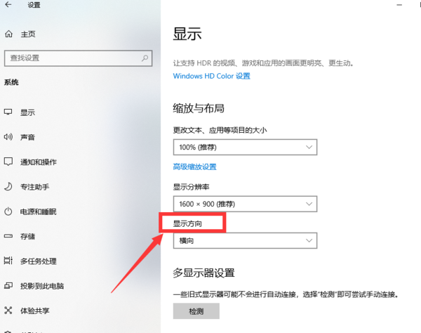 第三步,在页面的右下方有一个【显示方向】的选框,点击选择旋转一下就可以了。