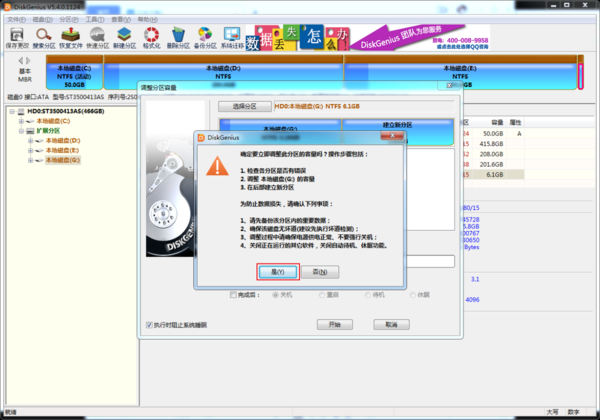 在调整后容量中填写需要保留的空间大小,点击开始。