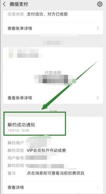 5、返回上一层支付订单界面,就可以看到【解约成功】通知。