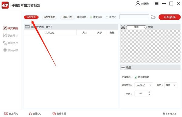 然后选择“添加文件”,将需要转换的图片一键上传到软件上。