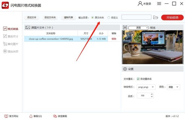 该软件默认的文件保存位置是原文件夹,如果想要更改的话,在输出目录中勾选“自定义”再选择新的保存位置就可以了。