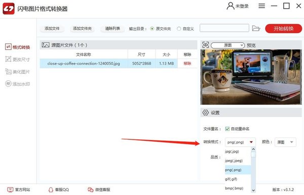 上传成功后,在软件界面的右下方,可选择需要转换的格式。