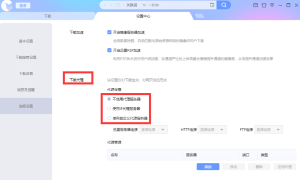 第三步,在页面右侧找到【下载代理】模块,选择符合条件的代理服务器类型,勾选即可。