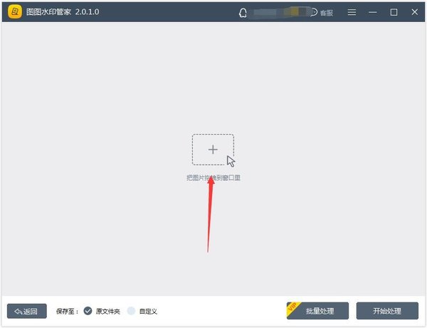 步骤二、通过点击软件中心灰色字体区域打开添加图片文件窗口添加图片到软件上。提示:把图片直接拖拽到软件上也可以添加图片。