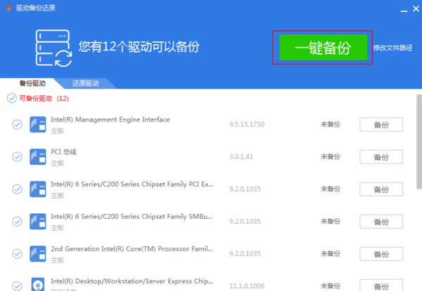 在新的窗口中选择需要备份的驱动,点击一键备份,等待软件进行备份即可。
