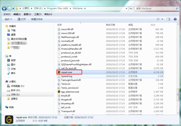 ②接着在软件的安装路径当中,找到【repair】应用程序,然后双击启动它,就可以解决WeGame闪退的问题。