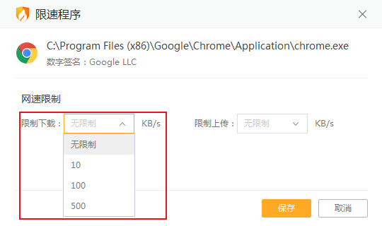 在限速设置中,我们可以选择软件提供的档位,也可以手动输入限速,输入完成后点击保存即可。