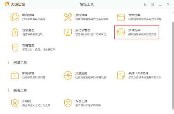 当我们将电脑中不用的软件卸载后,经常会发现硬盘中还会残留一部分文件,怎样都无法删除,这时候我们可以打开火绒安全,使用安全工具中的文件粉碎功能进行删除。下面就教大家如何进行操作。