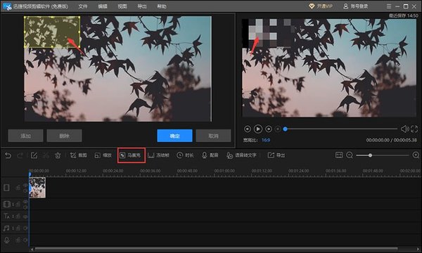 我们先按照上面的方法,给视频需要打码的位置添加打码,方法还是一样的点击【马赛克】按钮,再点击【添加】画一个框就可以了。