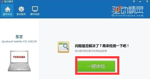 第一步,当然是先在电脑上安装驱动精灵,然后双击打开并点击【一键体检】按钮。