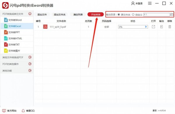 4、添加成功后需要设置一个文件保存位置,以便我们预览文件,最后点击”开始转换”按钮。