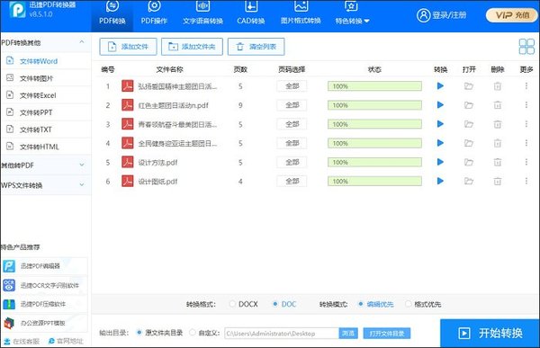 迅捷PDF转换器不仅可以进行PDF转换,还能进行图片格式、CAD转换甚至是文字语音转换,这功能可以说非常强大了,还专门有一个可以防止排版会变的功能。下面我们就一起来看一下,PDF转Word具体操作步骤吧。