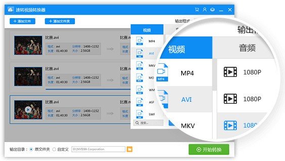 接着在【输出格式】中调整视频的转换格式和转换分辨率等转换参数,由于要把转换的视频保持原有清晰度,因此要注意把输出的分辨率调整为【同原文件】格式。