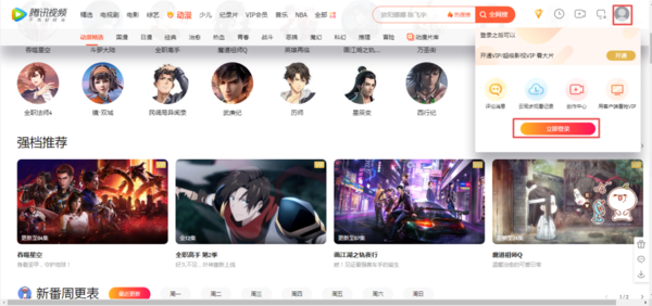 第二步,进入到腾讯视频的官网界面当中后,我们找到界面右上角的【人像】图标,然后将鼠标的光标放上去,在其弹出的窗口当中,我们点击【立即登录】按钮。