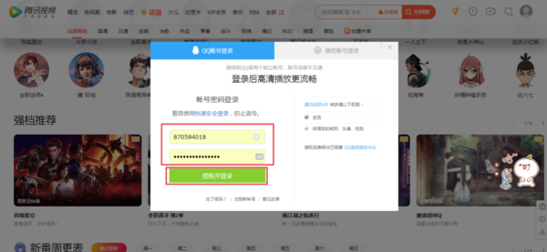 第三步,然后在弹出的登录窗口当中,选择所需要的登录形式,比如QQ或微信,然后输入相应的账号密码,点击【授权并登录】按钮。