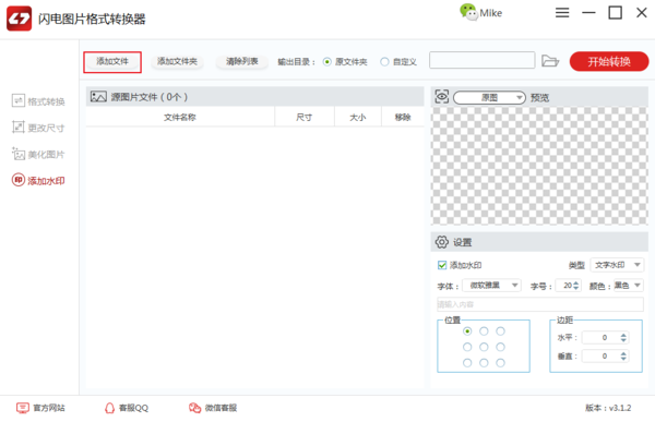 完成水印设置后,可以在右上方的预览中查看效果,确认无误的话点击右上的开始转换即可。