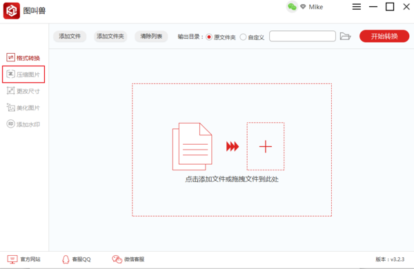 点击中间的加号,将需要压缩的图片添加到软件中。