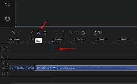 第六步、选中音频,可以点击【剪刀】按钮进行分割,多余的部分可以删除掉;