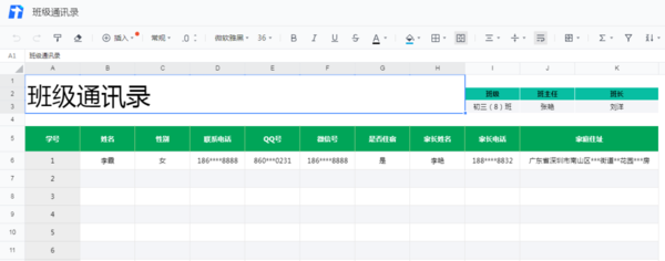第三步,点击即可进入班级通讯录编辑页面,根据班级实际情况填写通讯录内容即可。