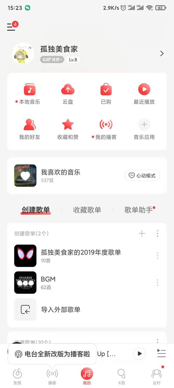 首先打开网易云音乐,在我的页面中找到需要导出的歌单。