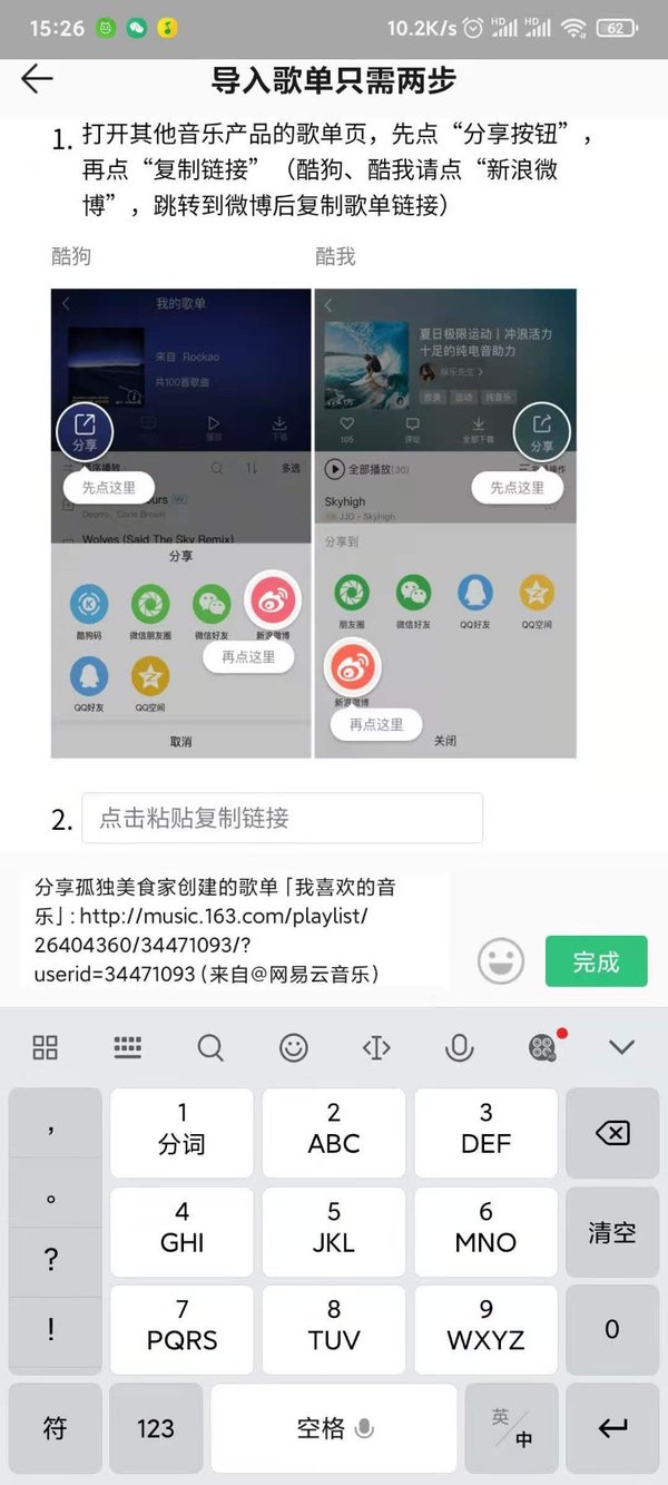 以上就是将网易云音乐的歌单导入到QQ音乐中的方法,比起手动输入歌曲名创建歌单来说,这个方法要方便很多。