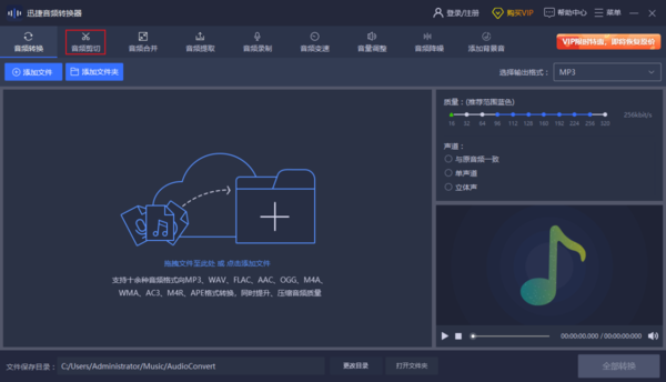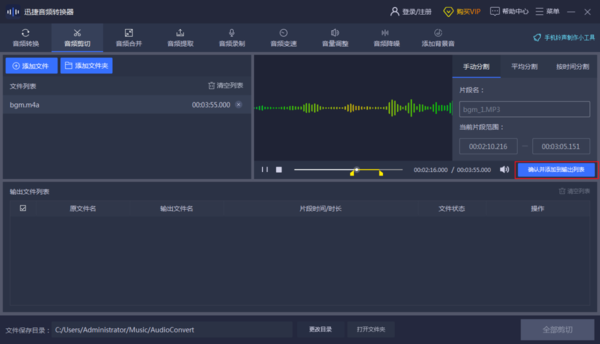 首先打开迅捷音频转换器,选择上方的音频剪切功能。