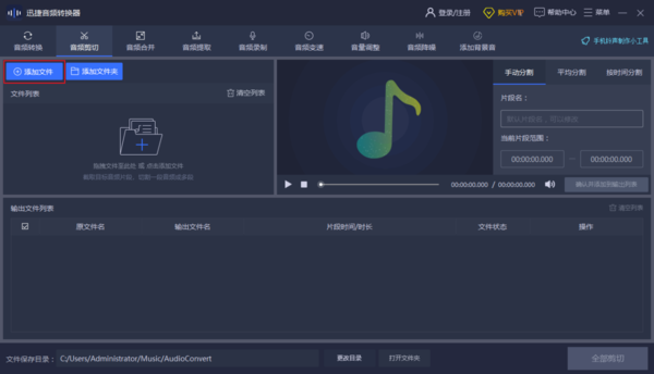 点击添加文件,将需要剪辑的歌曲添加到软件中。