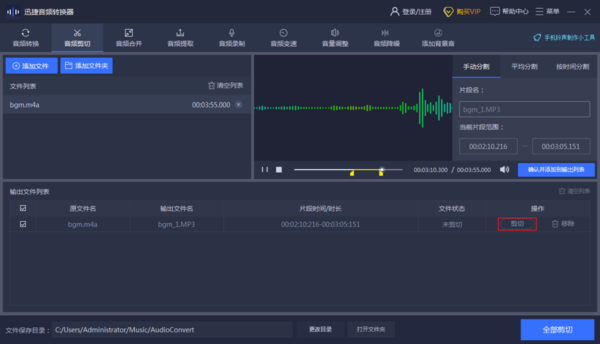 以上就是在歌曲中截取一段音频的方法了,操作步骤非常少,使用起来也相当简单,你学会了吗?