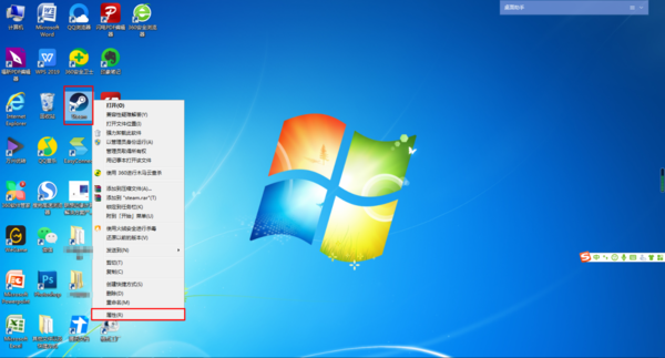 如果方法一的操作后,steam闪退现象依然没有得到解决的话,那么此时我们在电脑的桌面上,找到steam的软件图标,然后按下鼠标右键,在弹出的选项中,选择【属性】功能,并点击打开。