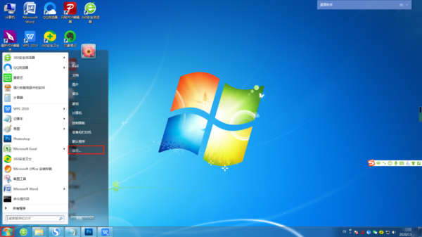 第一步,在电脑的桌面左下角,找到【开始菜单】按钮,并点击打开,然后在弹出的界面当中,找到【运行】功能,并点击打开。